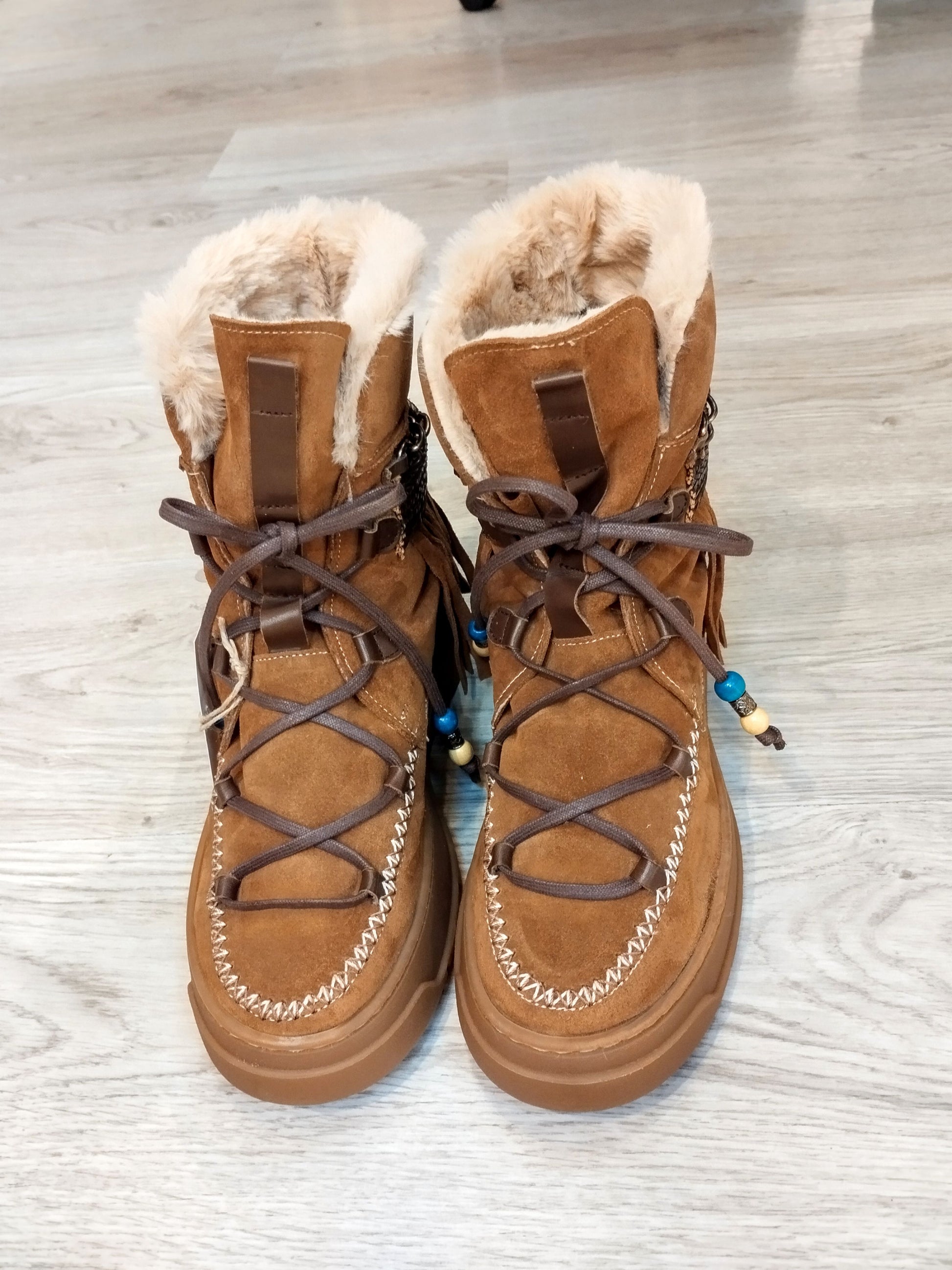 Dieser Stiefelette in Tabakfarbe wird Sie mit seinem Komfort und Stil überraschen. Mit Schnürsenkeln vorne und Fransen an der Rückseite, zusammen mit einer Kette, einem Fellfutter, ist dieser Stiefelette gemacht, um zu beeindrucken. Die genähte Gummisohle und das Ledergewebe garantieren seine Haltbarkeit und Widerstandsfähigkeit. Eine perfekte Wahl für jeden Anlass!