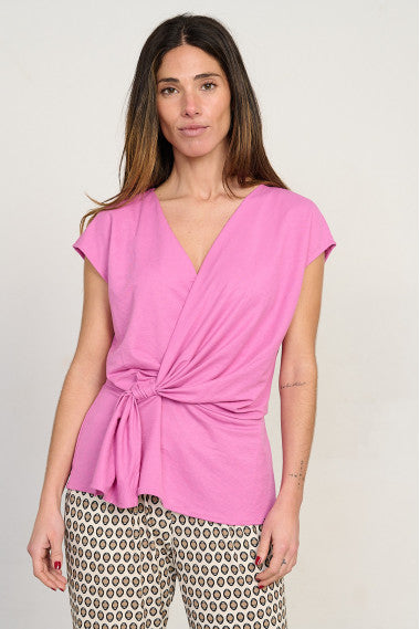 Das T-Shirt IDOIA ist dank seines überkreuzten Designs in Rosa und dem V-Ausschnitt perfekt für jeden Anlass. Mit kurzen Ärmeln und Piqué-Stoff bietet es den ganzen Tag über Komfort und Stil. Außerdem verfügt es über einen unsichtbaren Reißverschluss an der Seite.