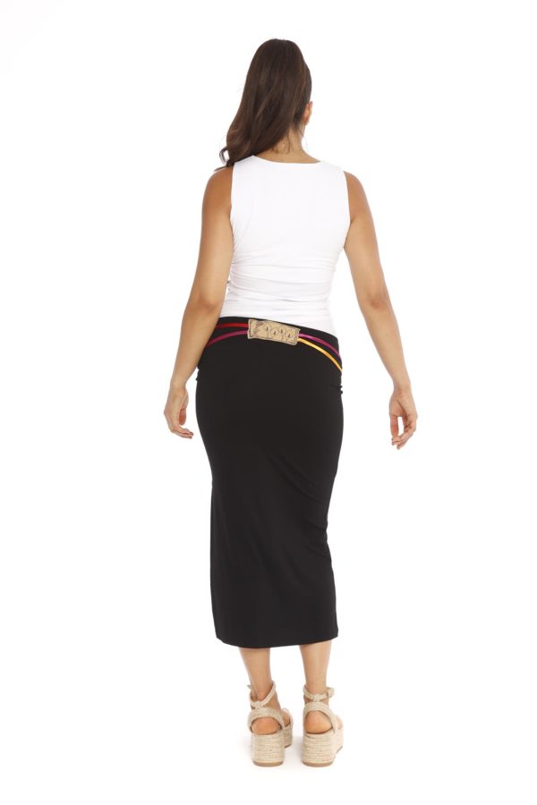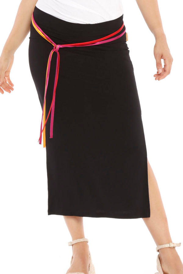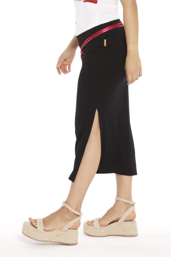 CELTIS SKIRT ist ein schwarzer Rock mit Seitenschlitz und farbigen Schleifen. Es ist flüssig und perfekt für jeden Anlass. Mit seinem eleganten und modernen Design lässt dieser Rock Sie raffiniert und modisch aussehen. Wagen Sie es, mit FALDA CELTIS aufzufallen!