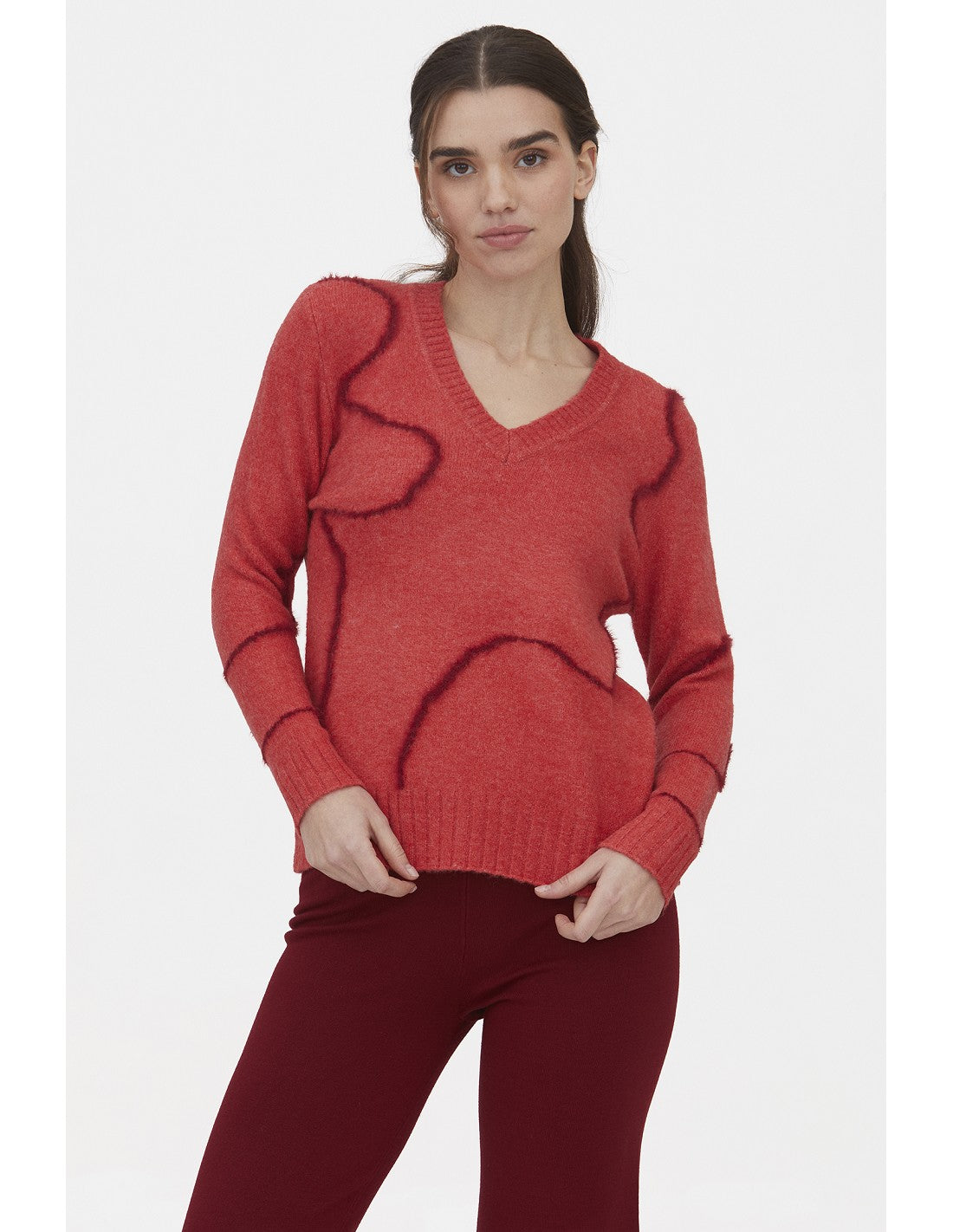 Dieser elegante Strickpullover mit V-Ausschnitt in Kastanienbraun ist perfekt für jeden Anlass. Sein Serpentinen-Detail verleiht ihm einen einzigartigen und raffinierten Touch, während sein weicher Stoff Sie den ganzen Tag über warm und bequem hält. Setzen Sie ein Style-Statement mit Jersey-Details.