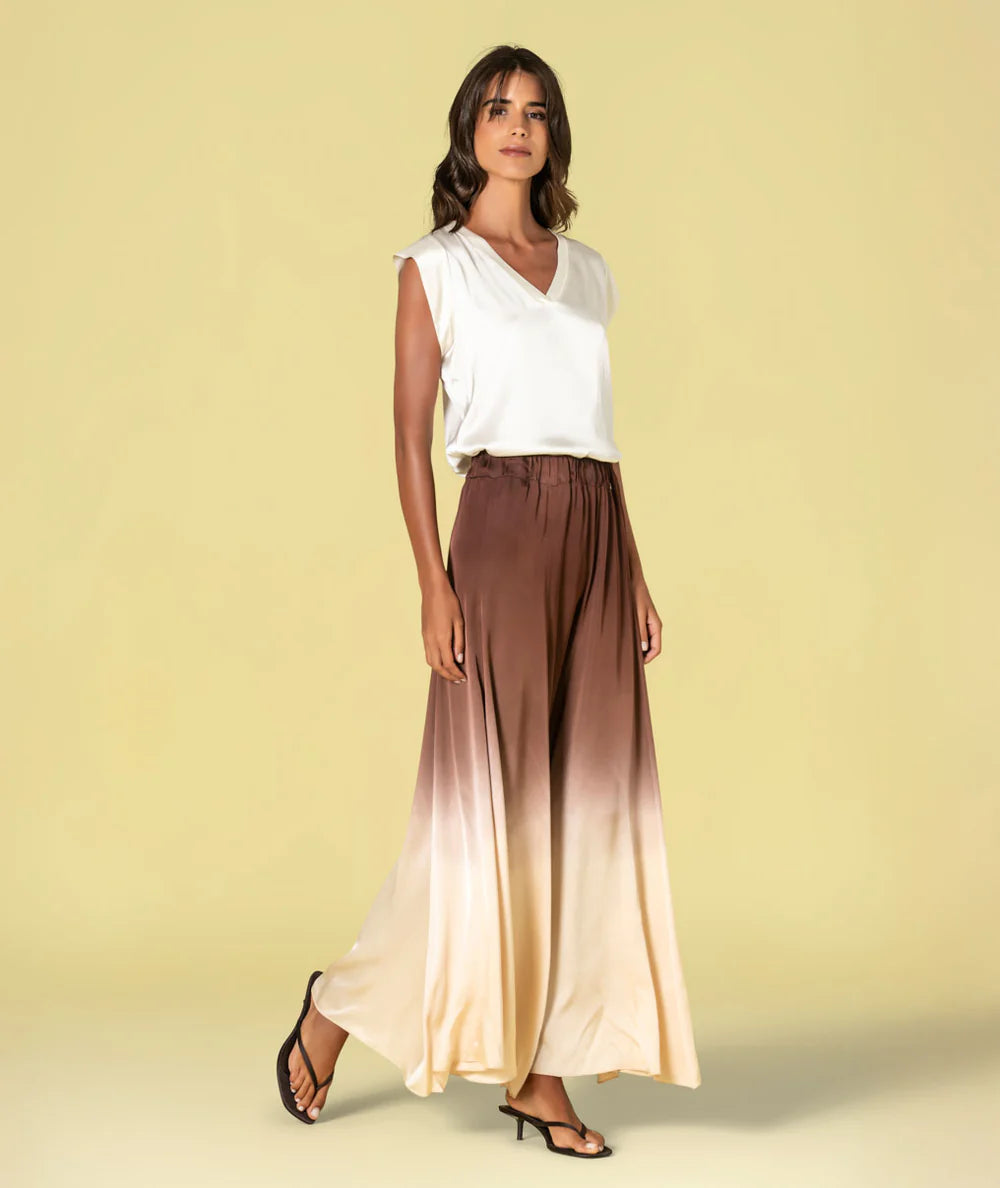 Langer Rock aus reiner Viskose, der einen eleganten und fließenden Fall bietet. Das zweifarbige Design kombiniert zwei kontrastierende Töne für einen raffinierten und vielseitigen visuellen Effekt. Die Viskose sorgt für eine weiche Haptik und einen natürlichen Fall, der die Silhouette vorteilhaft betont. Perfekt, um mühelos Tages- oder Abendlooks zu kreieren.
