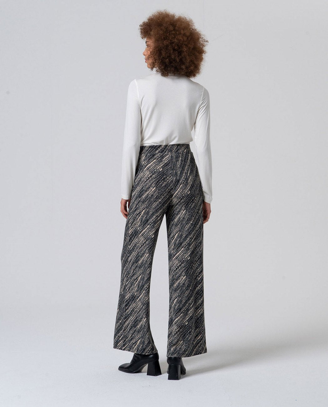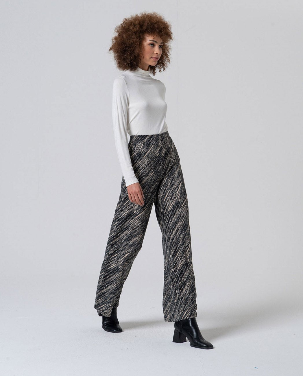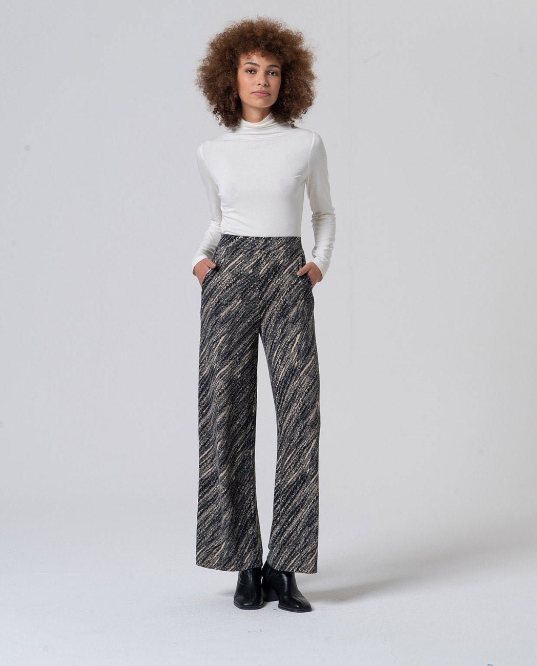 Diese Irla-Hose kombiniert 50 % recyceltes Polyester mit 46 % Viskose und 4 % Elasthan und bietet Nachhaltigkeit, Komfort und Elastizität. Ihr weiter Schnitt und der elastische Bund sorgen für eine bequeme und vielseitige Passform, während die Seitentaschen Funktionalität hinzufügen, ohne auf Stil zu verzichten. Ideal für alle, die ein elegantes und praktisches Kleidungsstück für den Alltag suchen.