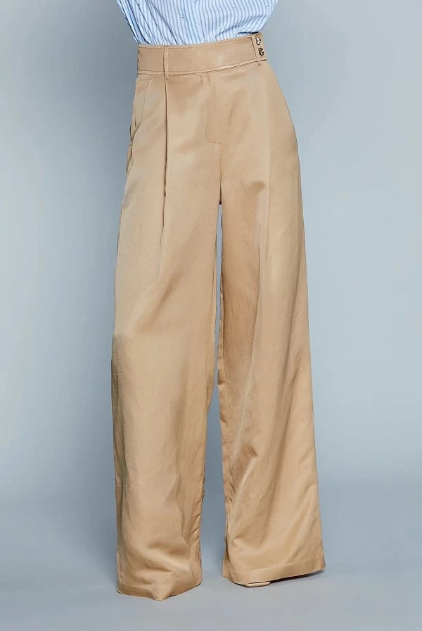 Palazzo-Hose PRAT | Eleganz und Raffinesse mit schmeichelhafter Passform Die Palazzo-Hose PRAT ist die perfekte Kombination aus Stil, Komfort und Raffinesse. Mit hohem Bund und erhöhtem Bustier entworfen, betont sie die Silhouette und streckt die Figur, wodurch jedem Look eine raffinierte Note verliehen wird. Ihr Palazzo-Schnitt garantiert eine fließende und elegante Bewegung, während die französischen Taschen Funktionalität bieten, ohne den Stil zu verlieren. Die vorderen Abnäher fügen ein Schneiderdetail hinzu, was sie zu einer idealen Wahl sowohl für formelle Outfits als auch für elegante Casual-Kombinationen macht. Hergestellt aus 82 % Viskose und 18 % Leinen, ist diese Hose leicht, atmungsaktiv und bequem, perfekt für jede Jahreszeit. Made in Italy besticht sie durch ihre Qualität und makelloses Design.