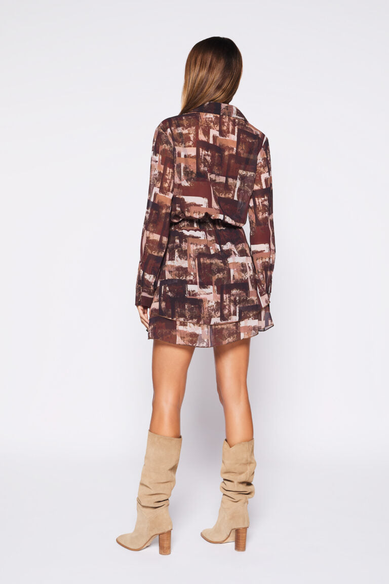 Mit dem KURZEN KLEID TEO bist du für jeden Anlass bereit. Dieses Chiffonkleid verfügt über eine Hosenunterlage für mehr Komfort, einen Hemdkragen und lange Ärmel sowie einen schönen Druck. Mit seinem eleganten und vielseitigen Stil garantieren wir dir, dass es dich spektakulär aussehen lässt. Hol es dir jetzt!