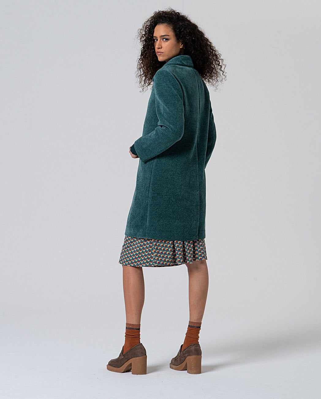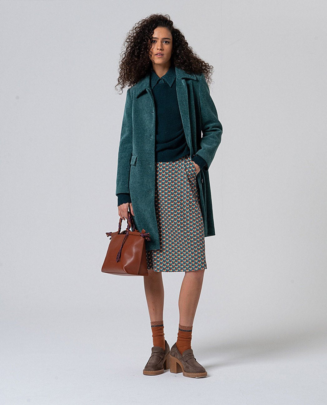 This straight coat in steel blue combines a classic design with a printed lining that adds a distinctive and elegant touch. Its straight cut guarantees comfort and a flattering silhouette, ideal for various occasions. The quality of its materials ensures durability and comfort throughout the day. Perfect for those looking for a functional coat without sacrificing style.