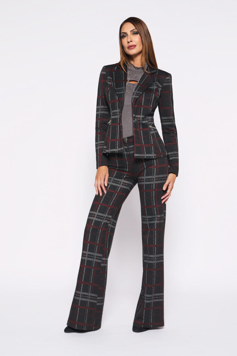 The checkered Jackie blazer is an elegant and versatile garment. With a silver button and side pockets with zippers, this blazer is perfect for any occasion. Stand out in style with this high-quality blazer!