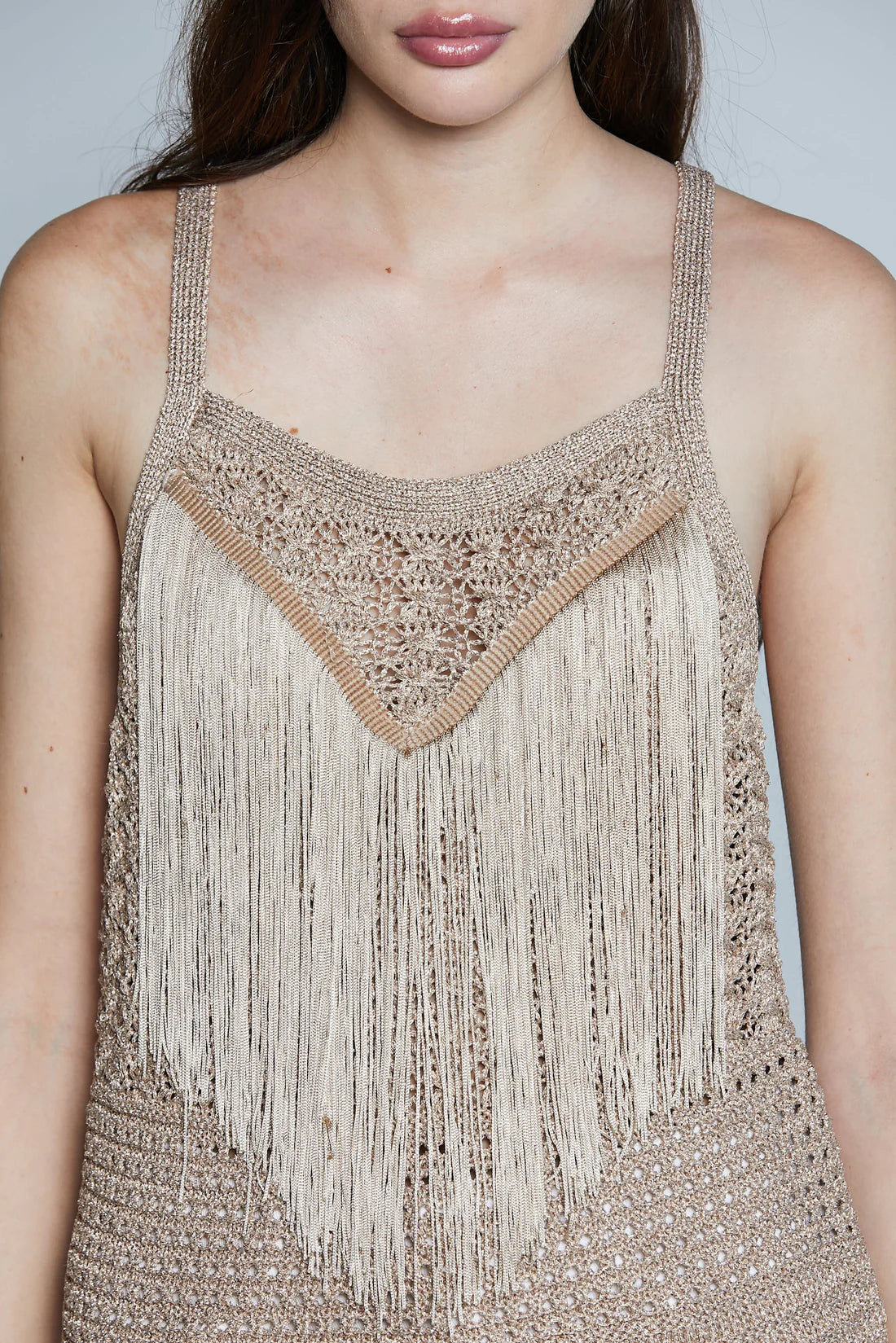 The BADAJOZ T-SHIRT is a sleeveless top with crochet and lurex details that give your look a boho-chic style. Made of 75% polyester and 25% other fibers, this garment is ideal for adding elegance and movement to your wardrobe. Get it and show off a unique style!
