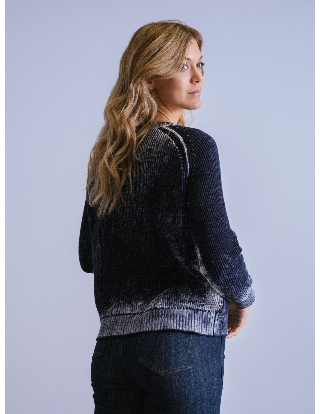 This navy blue and white gradient sweater stands out for its unique design and comfortable round neck. Its soft fabric provides warmth and comfort, ideal for cooler days. Its versatile color combination makes it easy to integrate with different styles, adding a modern and relaxed touch to your wardrobe. Perfect for those looking for a practical and personality-filled garment.