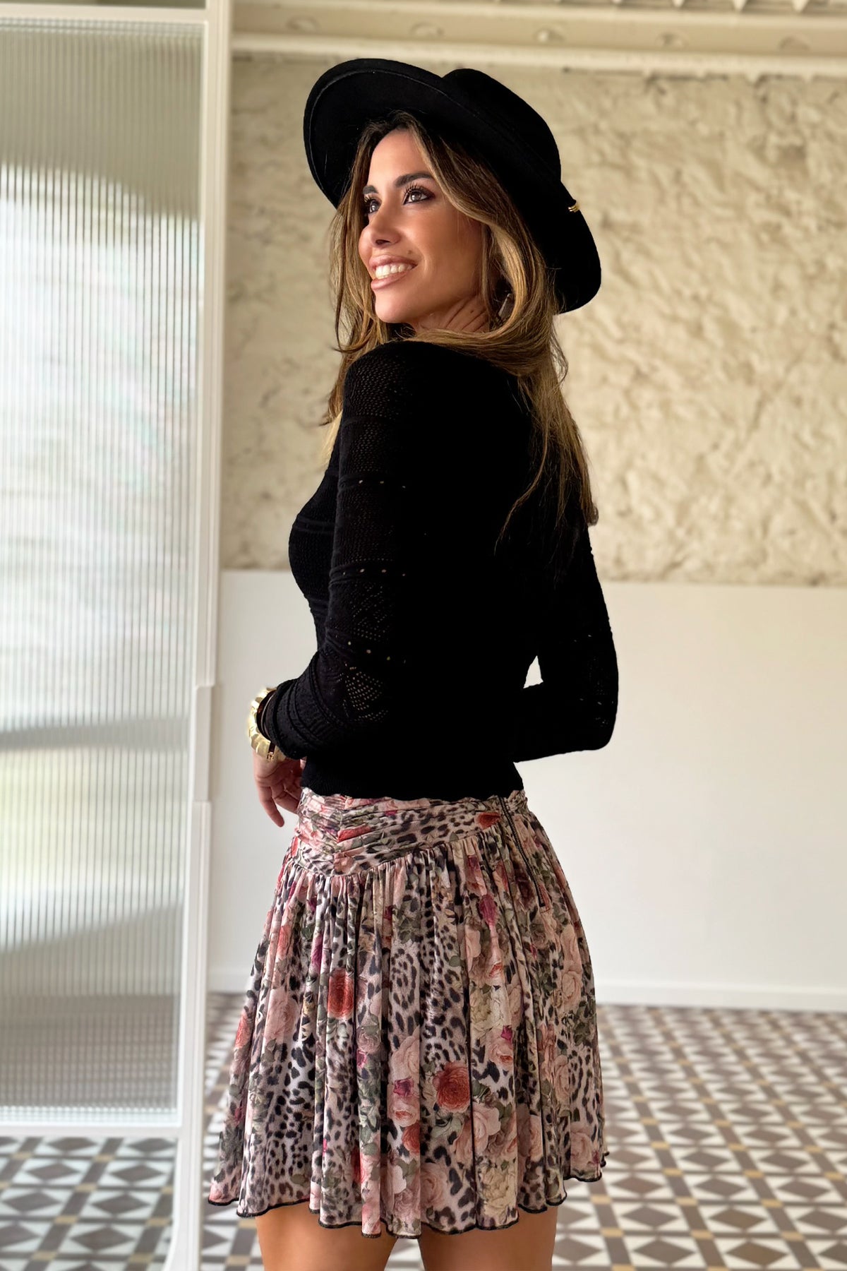This black V-neck sweater is the perfect garment to add a fresh and elegant touch to your outfit. Its light and comfortable design accompanies you all day, enhancing your style with a casual and feminine air. Ideal for pairing with any wardrobe staple and always looking fashionable with a fun touch.