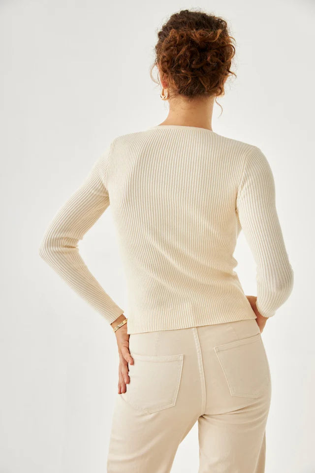 Este jersey de punto acanalado combina textura y estilo con un diseño moderno. El cut out en el hombro aporta un detalle distintivo que realza el look, mientras que los botones añaden un toque funcional y decorativo. Ideal para quienes buscan una prenda versátil que une confort y sofisticación en cualquier ocasión.