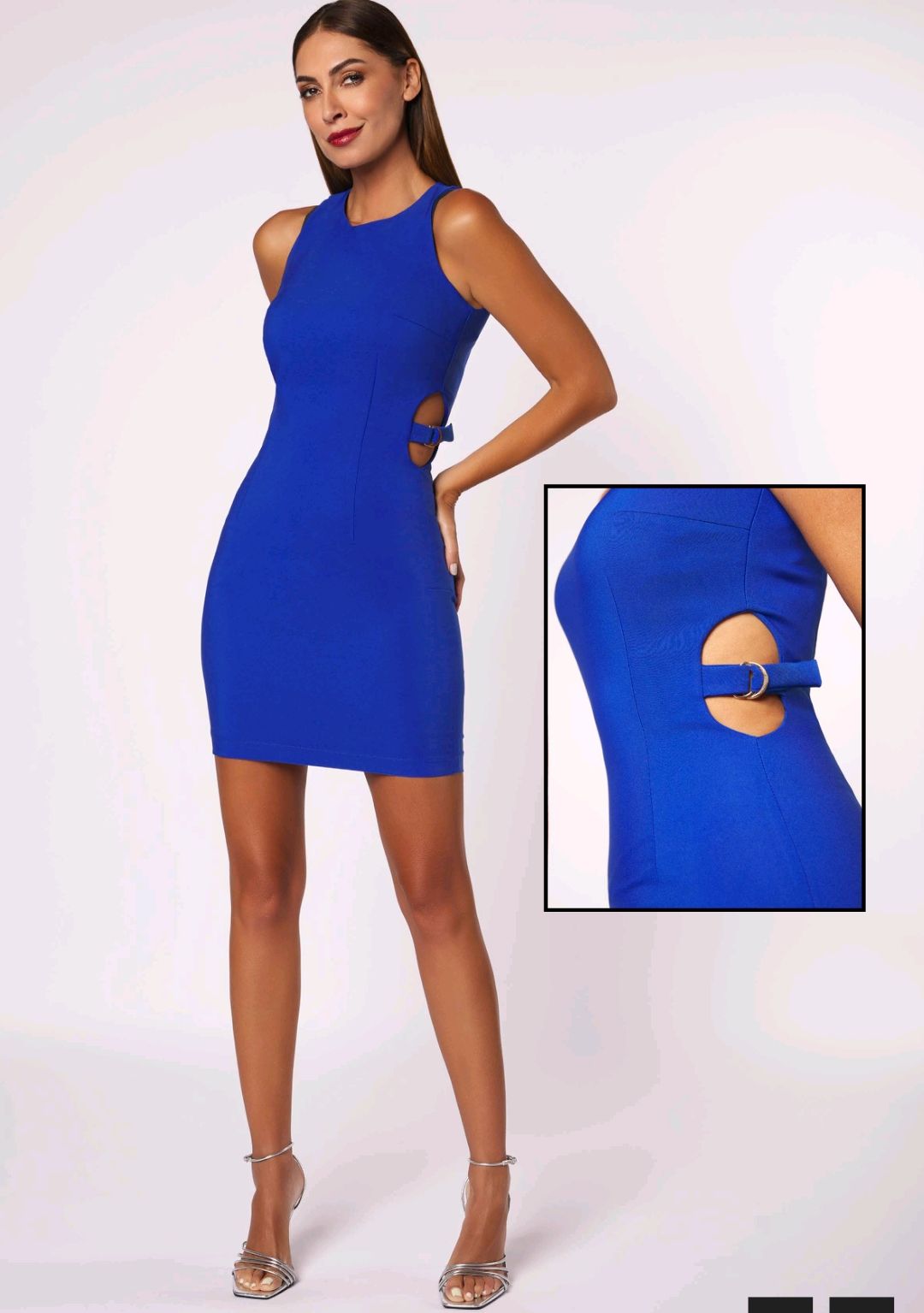 Vestito SENIA. Con il suo colore blu Klein e le aperture sui lati decorate con fibbie, questo vestito corto ti farà risaltare in ogni occasione. Il suo design moderno ed elegante ti farà sentire sicura e alla moda. Prendilo subito!