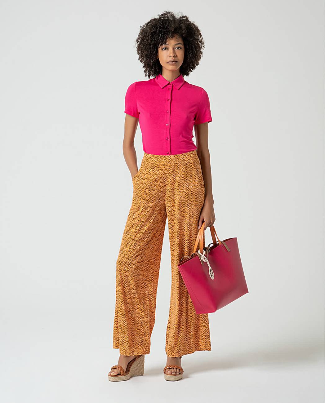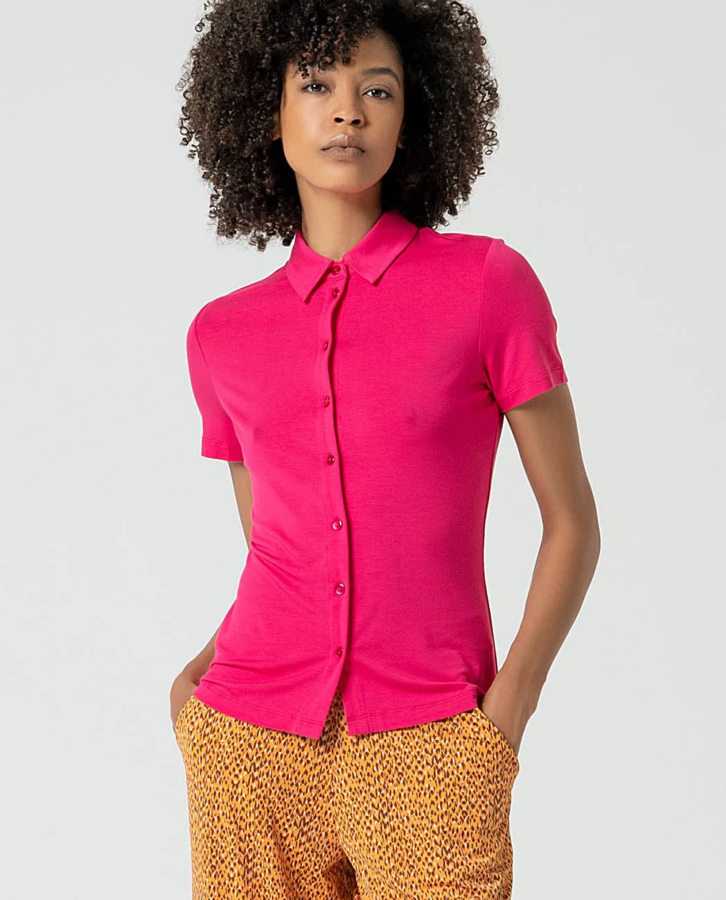 Questa camicia a maniche corte in un vibrante tono fucsia combina stile e comfort, ideale per chi cerca un tocco di colore nel proprio guardaroba. Il suo taglio curato e il tessuto leggero assicurano freschezza e libertà di movimento, perfetta per l'uso quotidiano o eventi informali. Un capo base versatile che dona energia e sofisticatezza a qualsiasi outfit.
