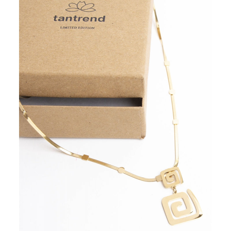 Este collar corto presenta una cadena chata tipo “snake” decorada con estaciones geométricas y un centro calado dividido en dos piezas, todo fabricado en acero inoxidable con un baño de oro de 14 quilates que garantiza durabilidad y un brillo intenso. Con una medida de 39 cm, más 3 cm de colgante y una cadena de extensión, se adapta perfectamente al contorno del cuello, ofreciendo elegancia y sofisticación en un tono dorado clásico. Ideal para complementar cualquier estilo con un toque moderno y refinado.