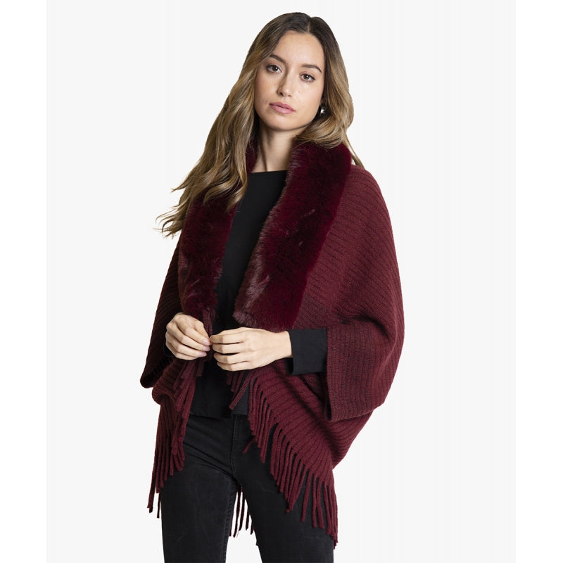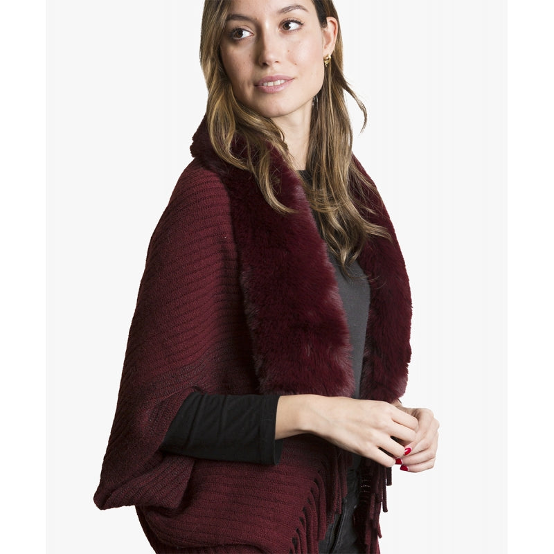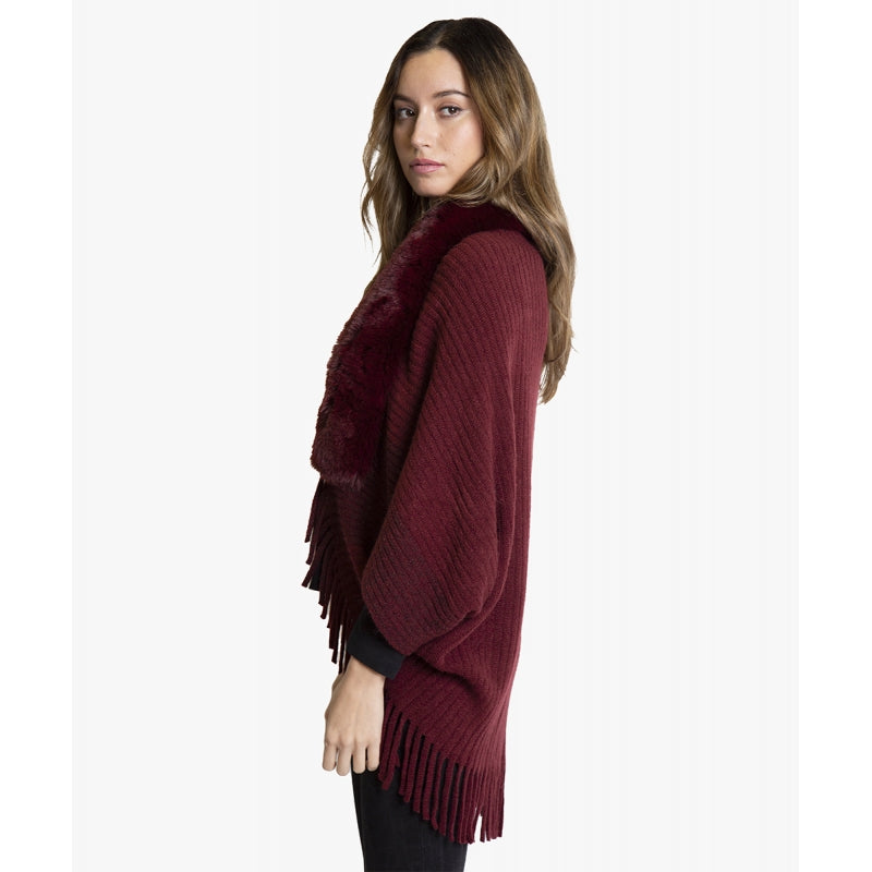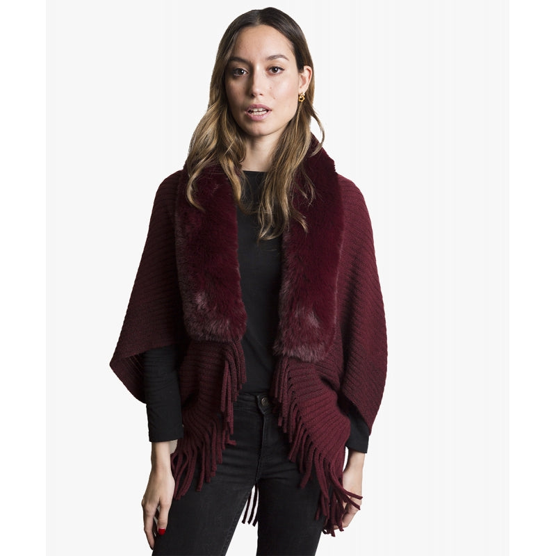 Este chaleco en punto canalé color burdeos combina textura y estilo con un diseño de flecos en el borde inferior y un elegante cuello de pelo sintético suave. Fabricado en 100% poliéster, ofrece comodidad ligera con un peso de 335 gramos y un ajuste único para todas las tallas gracias a su formato free size. Ideal para añadir un toque sofisticado y contemporáneo a cualquier look.
