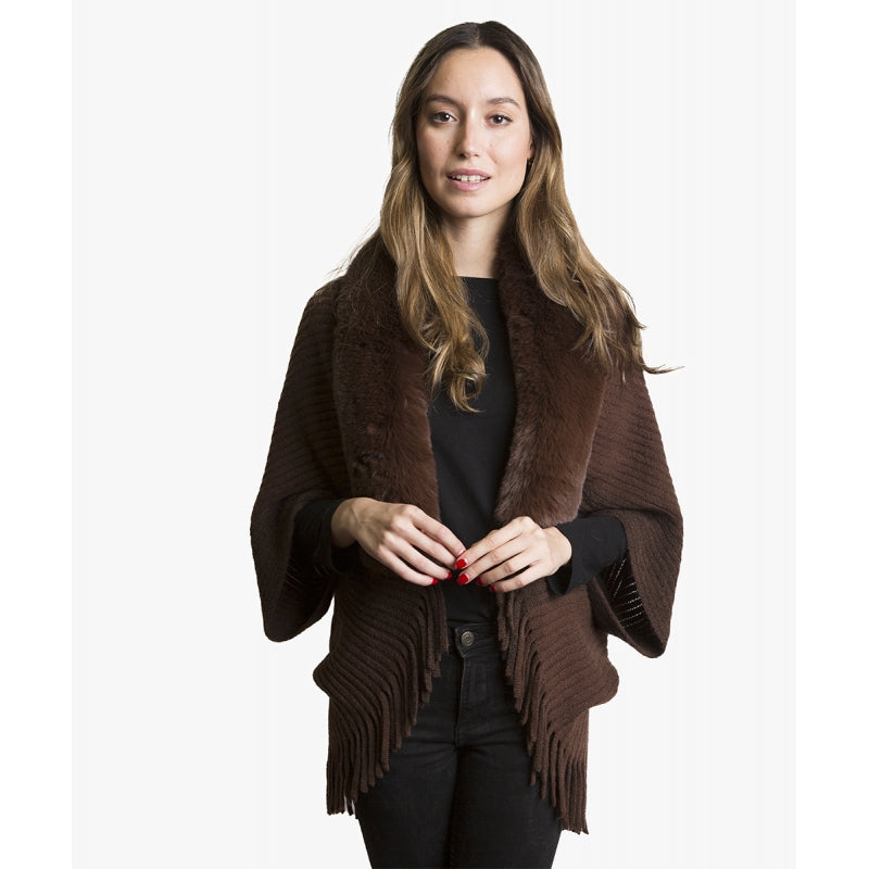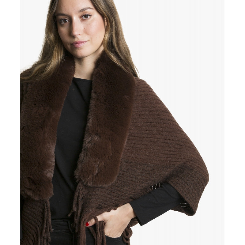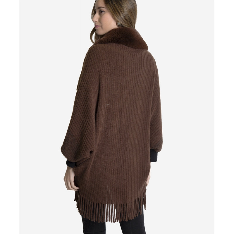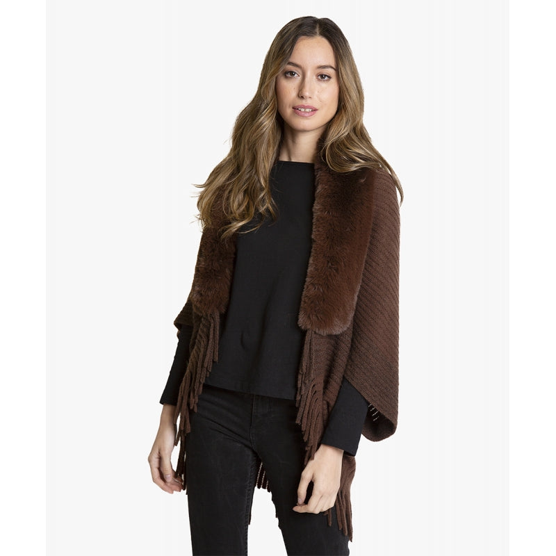 Este chaleco Stile en color marrón chocolate combina elegancia y confort gracias a su tejido en punto canalé suave. Su diseño incluye flecos en el borde inferior y un cuello de pelo sintético que aporta un toque sofisticado y cálido. Con una talla única, está elaborado 100 % en poliéster, ofreciendo ligereza y durabilidad con un peso de 335 gramos, ideal para complementar cualquier estilo con una prenda versátil y de alta calidad.