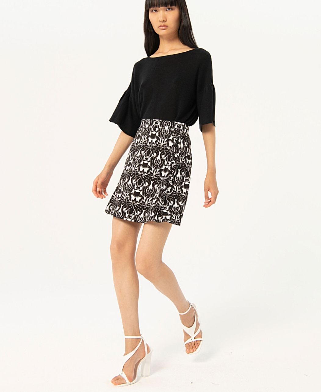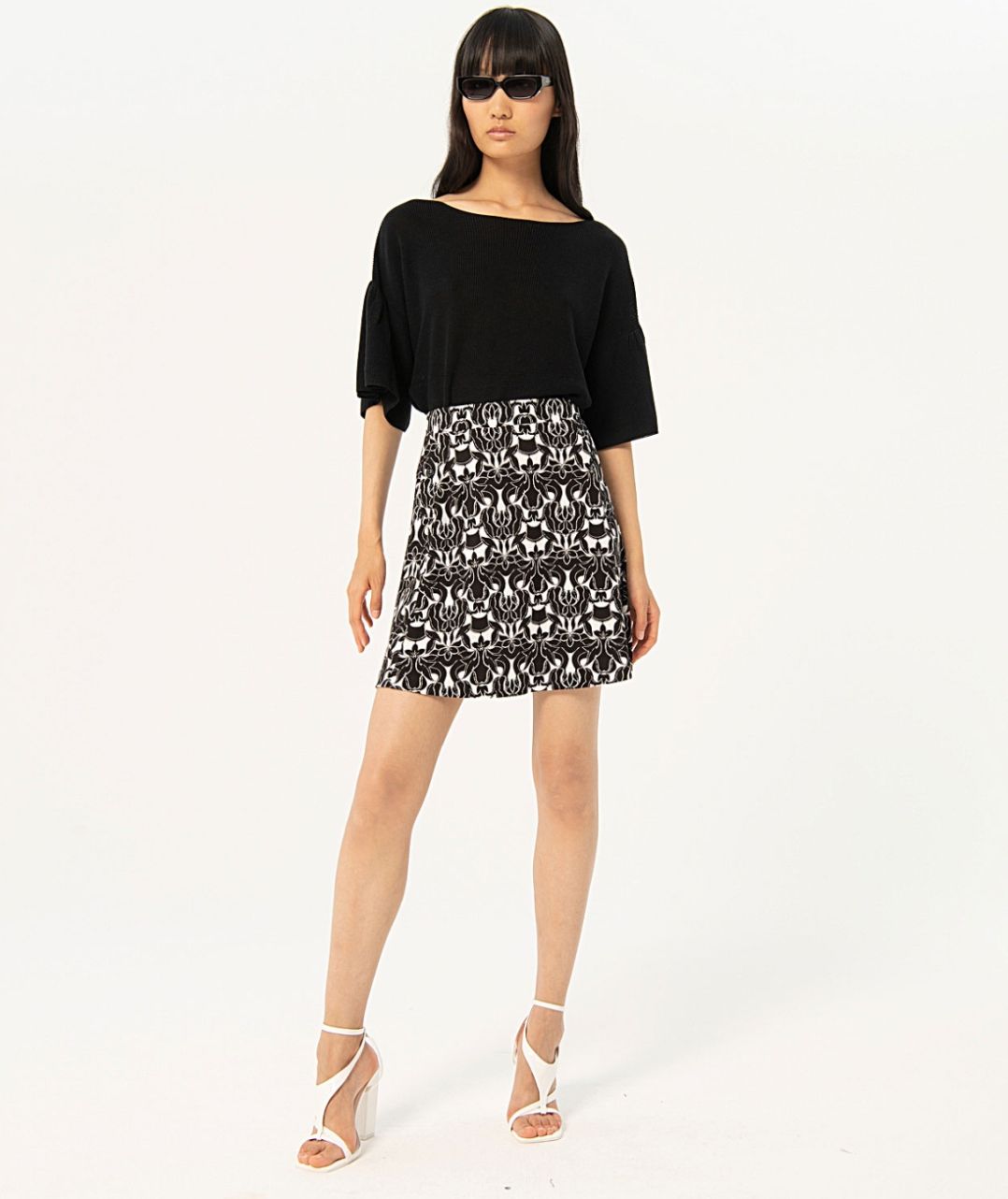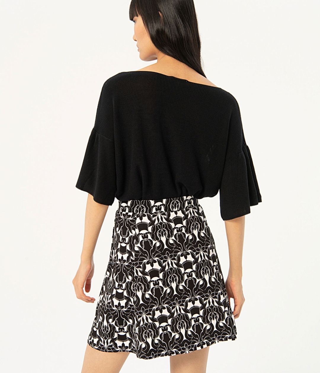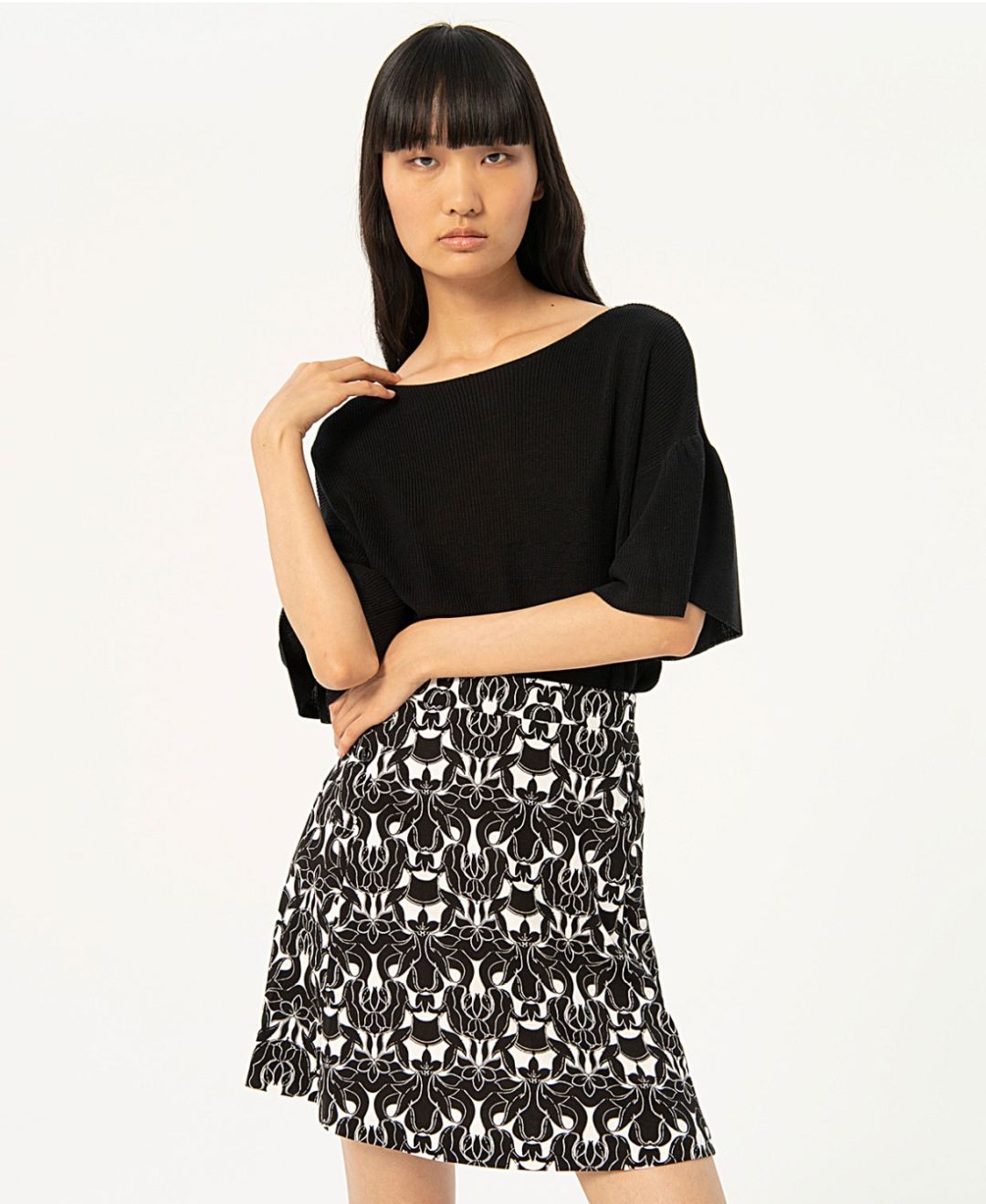 Disfruta de un estilo único con nuestra Falda Maro. Con su estampado en blanco y negro, esta falda corta es perfecta para cualquier ocasión. La cintura engomada y el adorno de tapetas de bolsillo falso en los laterales le dan un toque más especial
