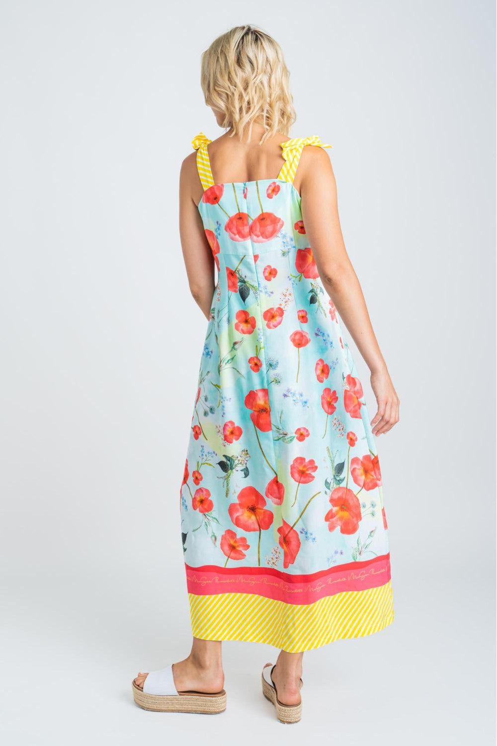 Vestido largo de tirantes anchos con lazada, estampado floral rematado con bandas, con forro