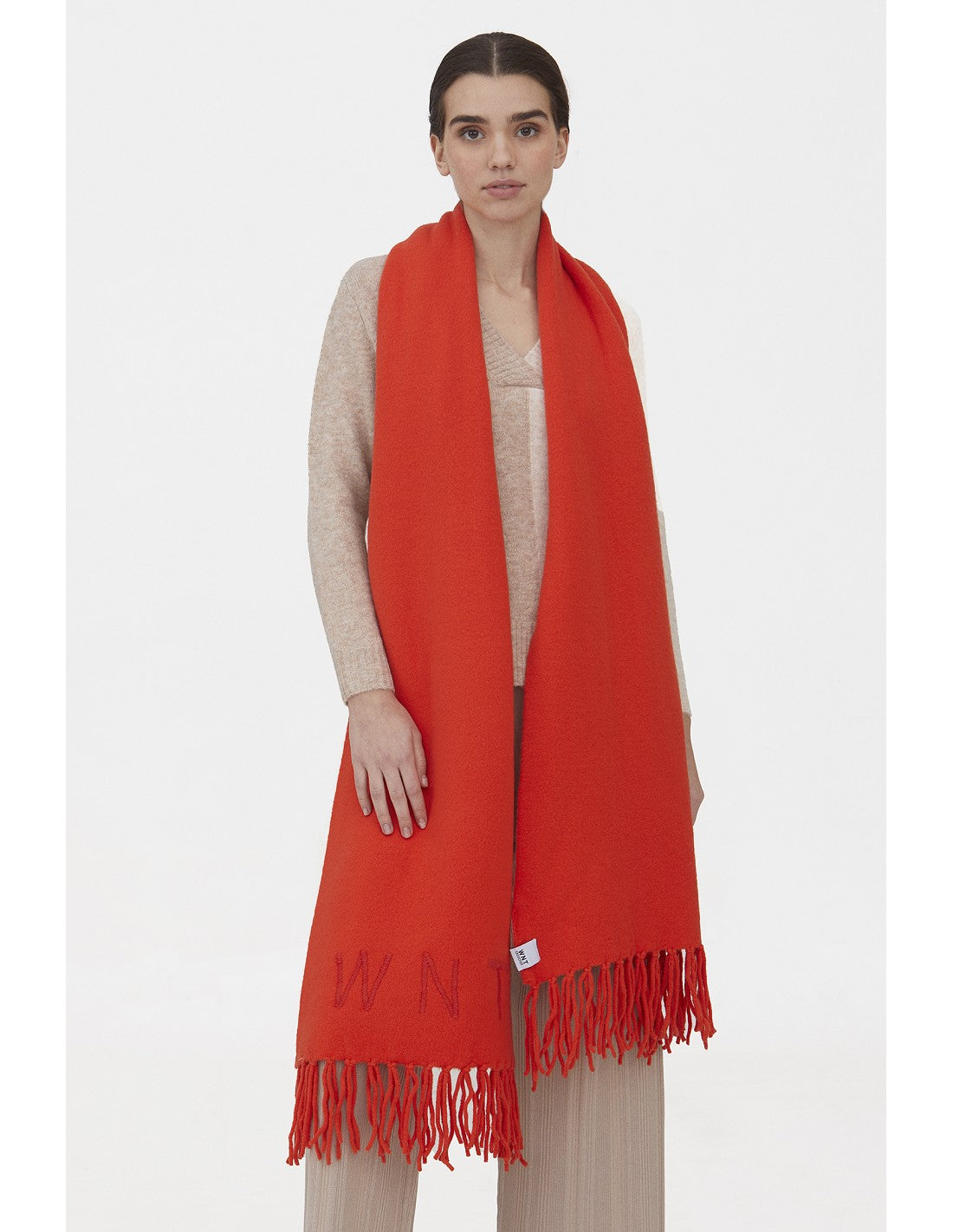Lenço liso com franjas: Mantenha o pescoço aquecido e estiloso com este lenço liso feito de tecido macio. A franja adiciona um toque de elegância a qualquer look. Uma opção essencial para o inverno!
