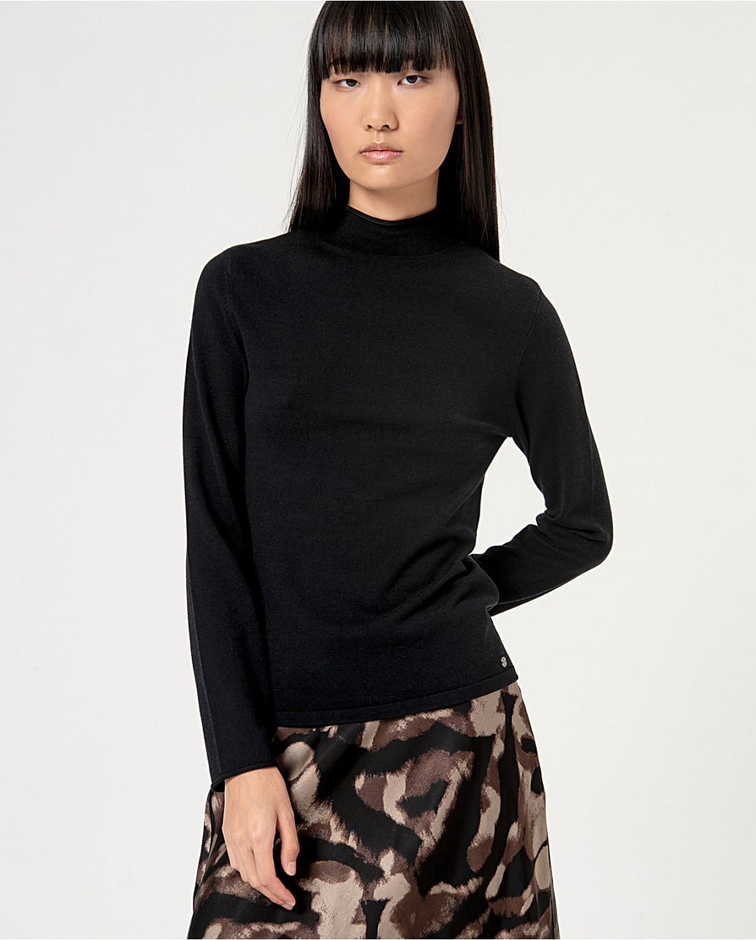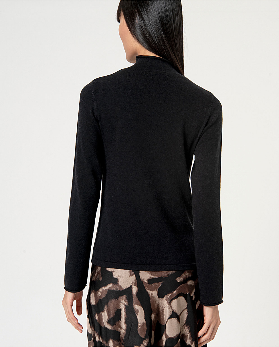 Este suéter preto liso de malha com gola Perkins é uma excelente opção para um look elegante e confortável. Feito com tecido de alta qualidade, este pulôver oferece um toque macio e agradável à pele. Perfeito para usar em qualquer ocasião, irá mantê-lo aquecido e elegante.