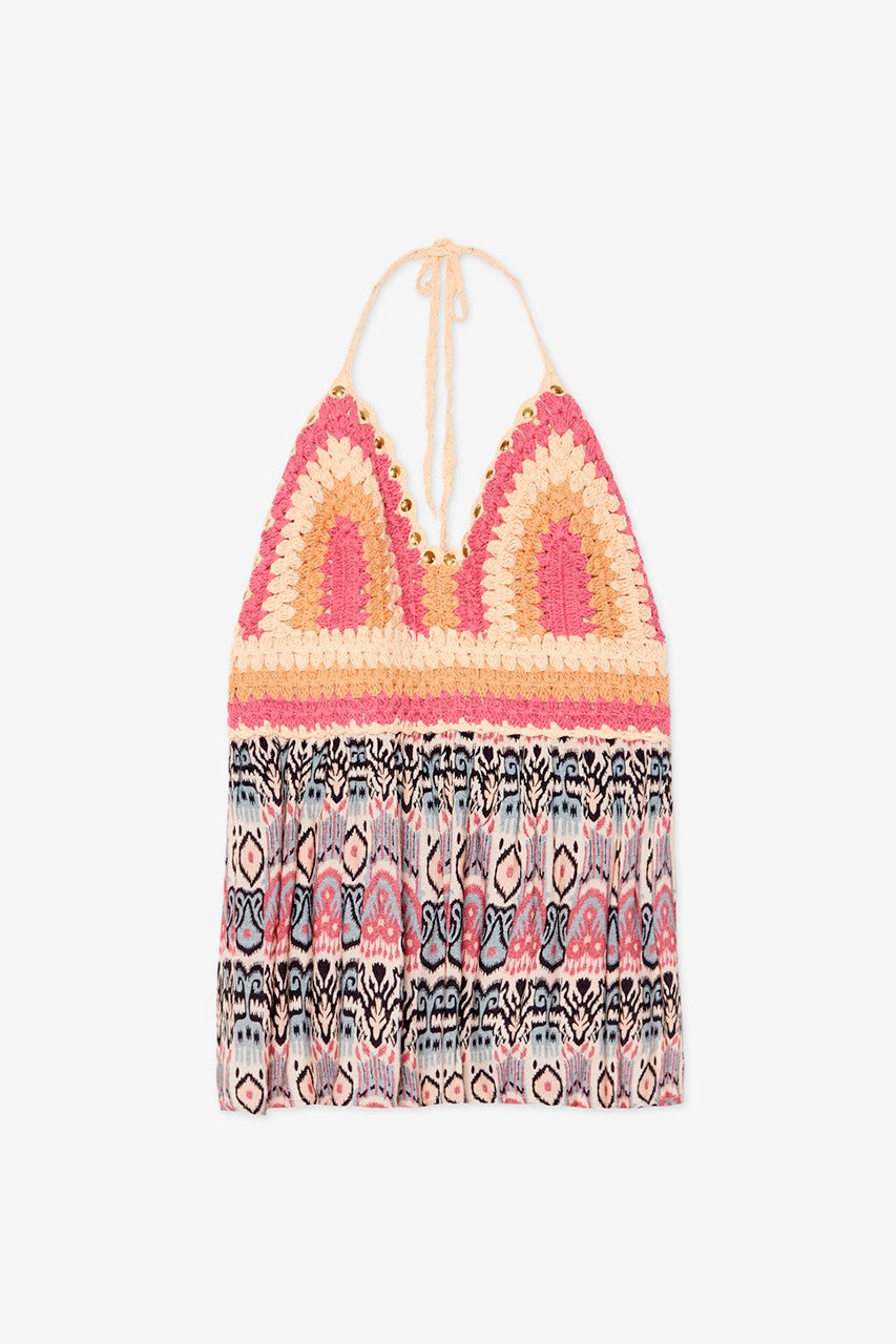 Deixe-se levar pelo estilo étnico do nosso HETRI TOP com seu design CROCHET PEITO e ELÁSTICO NAS COSTAS. Além disso, seu corte HALTER e estampa exclusiva garantem um look espetacular para qualquer ocasião. Adquira o seu agora!